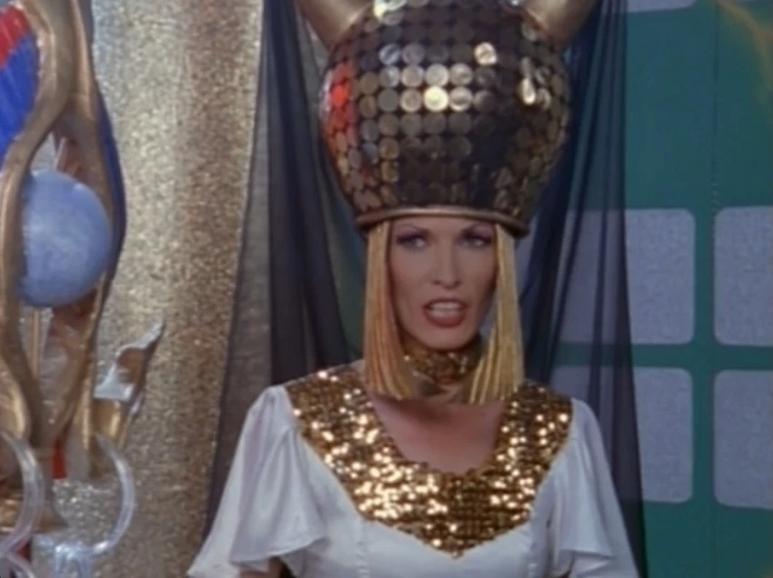 Despera is an advisor and strategist to Grimlord who also created her. She is dressed in an elegant white robe and a horned headdress, and wields a large scepter. She is quick to lose her temper and is an immensely powerful warrior. She is the sister of Desponda. Ryan once clashed with Despera, who battled him through various dimensions. In our dimension, Despera could float and blast purple electricity from the sphere on her staff. In another dimension, Despera seemed to turn invisible and attacked by throwing her staff around like a spear. Ryan also encountered another dimension, while involved in a battle with her, that was like a giant, slowly revolving crystal ball. Ryan escaped this dimension by blasting the crystal ball walls a few times with his laser pistol. Ryan defeated Despera in battle, by tricking her into zapping a trap wall in the temple containing Grimlord's secret identity. She was struck in the shoulder by an arrow, and after removing the arrow, promptly retreated. Unlike her Japanese counterpart, she doesn't fade away after Oraclon's destruction.