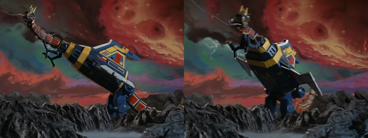 Upon receiving orders from Gavan, the lower half of Dolgiran called the Dol Unit (ドルユニット Doru Yunitto?) is separates and transforms into a giant blue dragon-shaped robot. Possessing its own consciousness[3], it supports Gavan in battle. While a cockpit exists within its body[note 1], Gavan typically issues commands while standing on Dol's snout during combat. Gavan uses Dol mostly to destroy Makuu's spacecraft but has also been used several times to fight monsters that have grown to giant size.