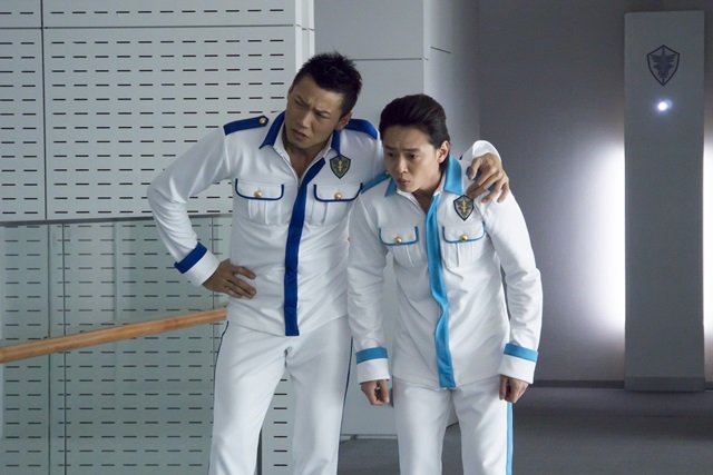 Galactic Patrol's new high ranking officer giving Captain Geki Jumonji a history lesson about the legendary metal warriors and space teams called the Space Squad!
