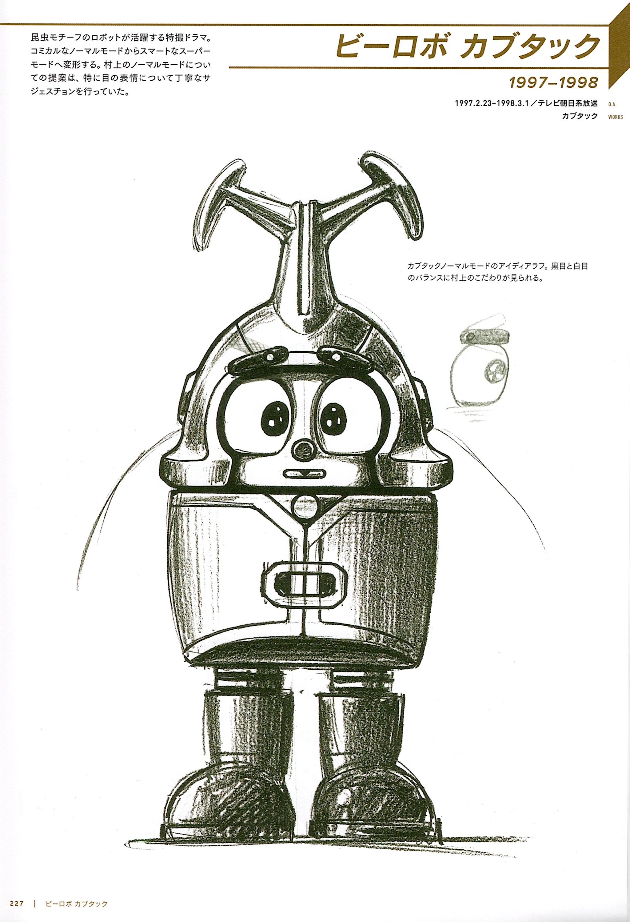 No. 1: Kabutack (カブタック Kabutakku?) is the protagonist of Beetle Robot Kabutack. He's the first Beetle Robot and the prototype model, built with a rhinoceros beetle-like appearance & a biochip based on the insect.